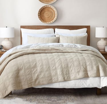 If you're after a lighter bedding option with that classic Pottery Barn farmhouse aesthetic, the Farmhouse Cotton Quilt Set is perfect. With its vintage-inspired design and soft cotton fabric, this set creates a cozy, inviting atmosphere. The light, airy colors bring a fresh, bright feel to your bedroom, and it's perfect for layering with other textures like throw blankets or decorative pillows.