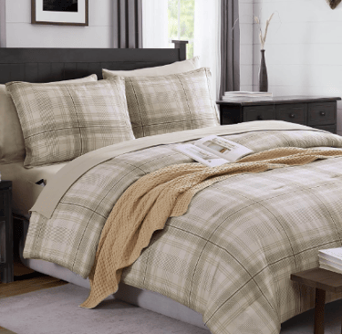Bring rustic charm into your home with this Cozy Rustic Farmhouse Bedding Set. The subtle plaid pattern and warm, earthy tones give it a Pottery Barn-inspired, farmhouse feel. Whether you have a country-style bedroom or simply want to add some cozy vibes, this bedding set is perfect for creating a welcoming, relaxed space.